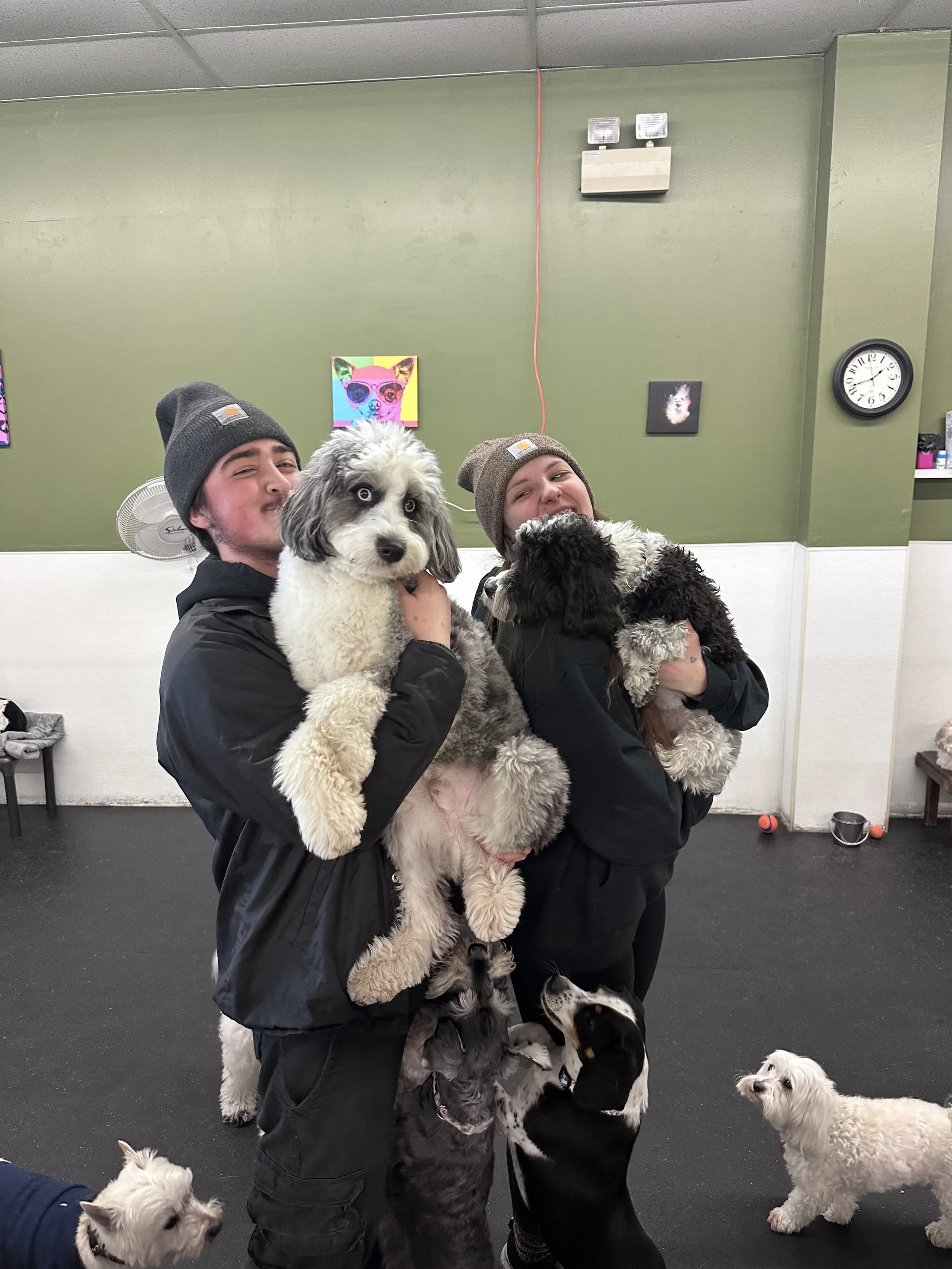 We met while working at a doggy daycare, and since then we’ve continued to expand our experience in a variety of settings.